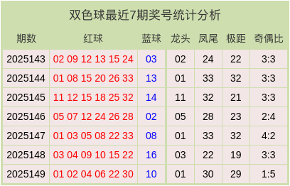 双色球最近7期奖号和数据分析表